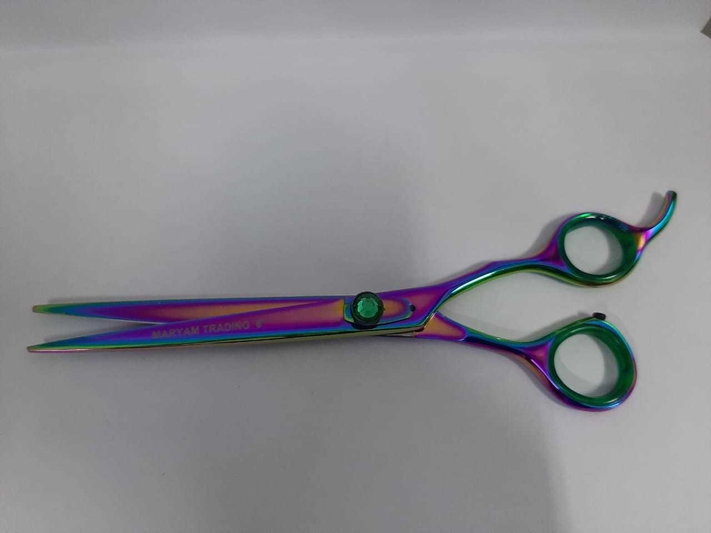 Tesoura Reta Maryam Trading 8". Liga metálica japonesa - aço 420. Cores variadas. foto ilustrativa.